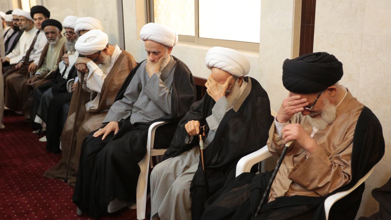 آية الله قاسم يودع رفيق دربه.. ويشارك الآلاف في التشييع المهيب للعلامة الراحل الوداعي