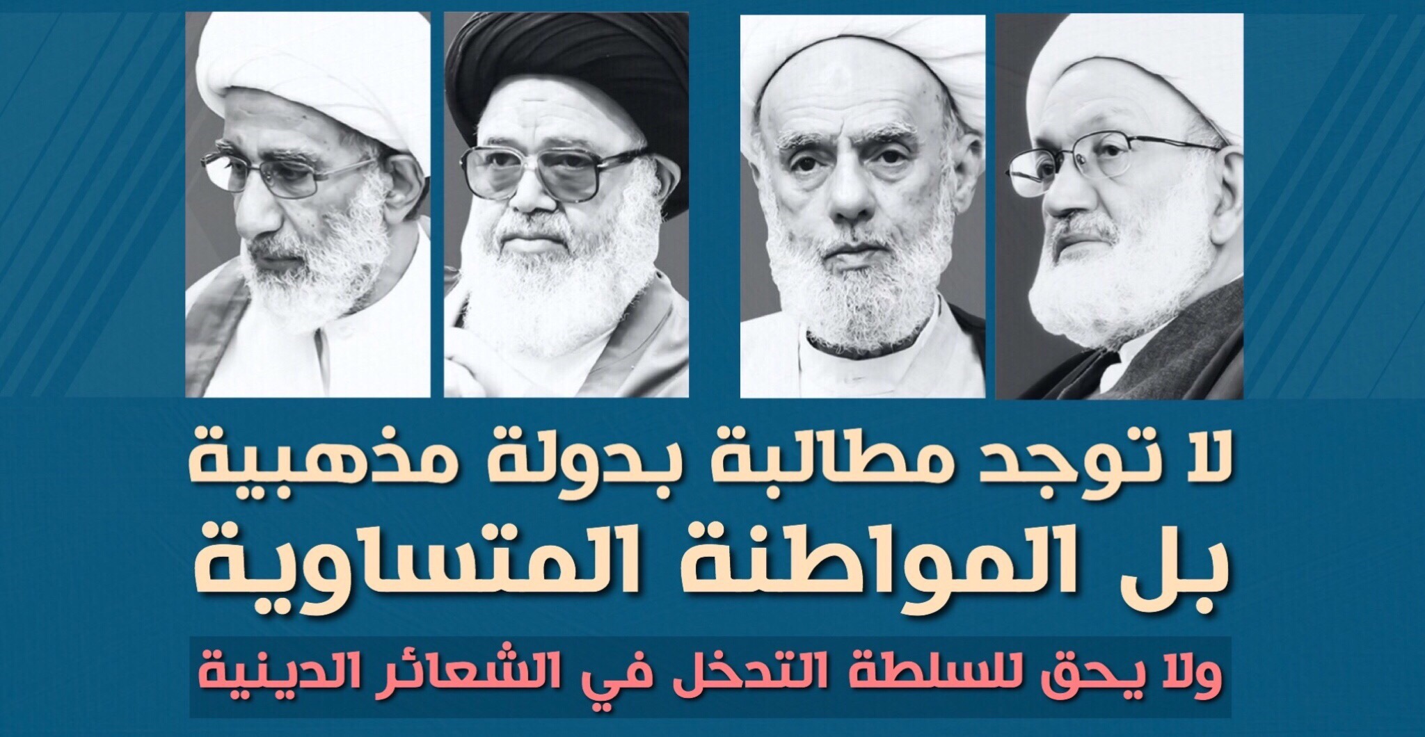 آية الله قاسم و38 عالماً : لا توجد مطالبة بدولة مذهبية بل المواطنة المتساوية، ولا يحق للسلطة التدخل في الشعائر الدينية