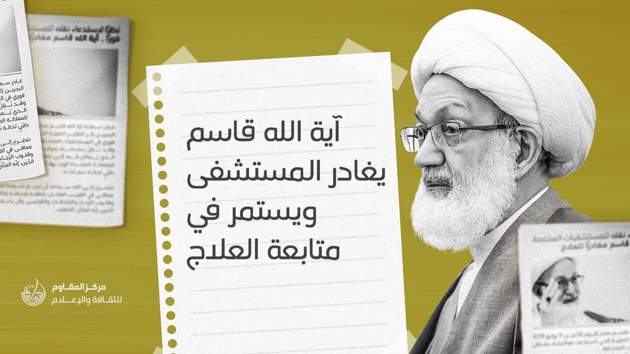 بيان رقم (10) آية الله قاسم يغادر المستشفى وسيستمر في متابعة العلاج وتلقي الرعاية الطبية اللازمة
