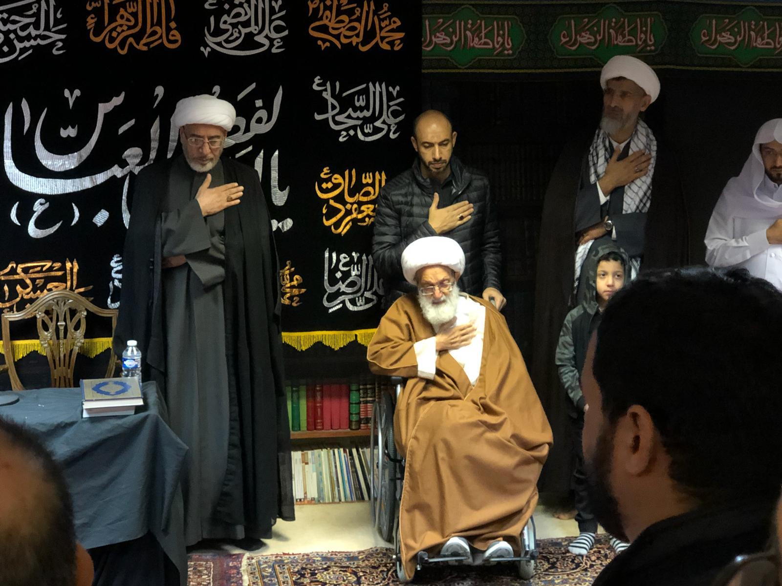 آية الله قاسم يشارك في مجالس الليلة الثانية من عزاء الامام الحسين(ع) بمقر إقامته للعلاج