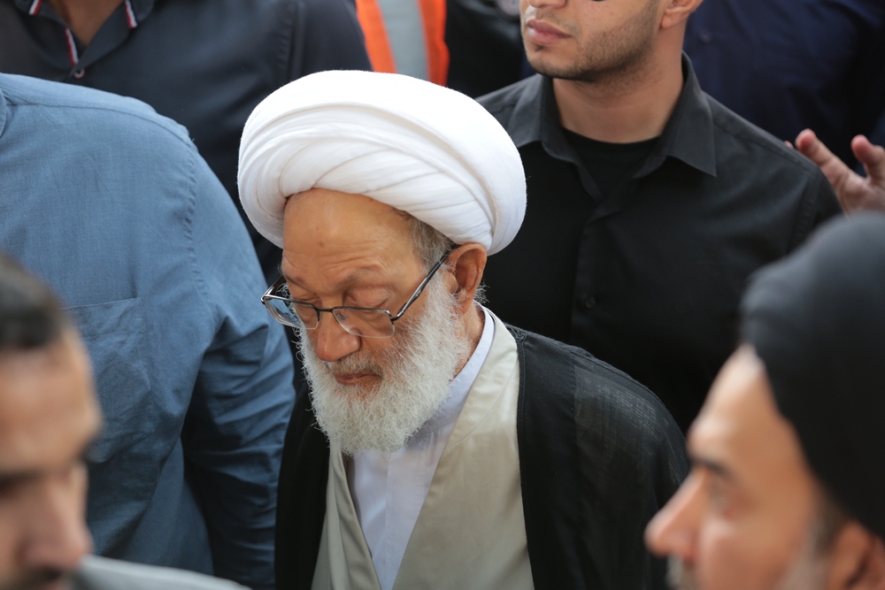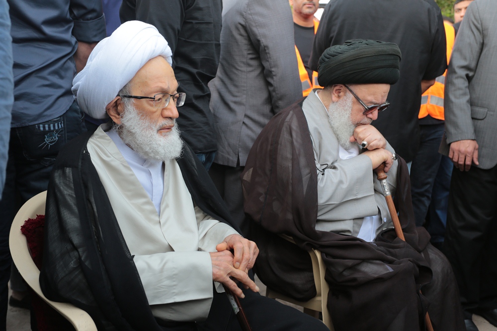 آية الله قاسم يشارك في ختام مراسم العزاء برحيل العلامة الوداعي بموكب وفاء حاشد