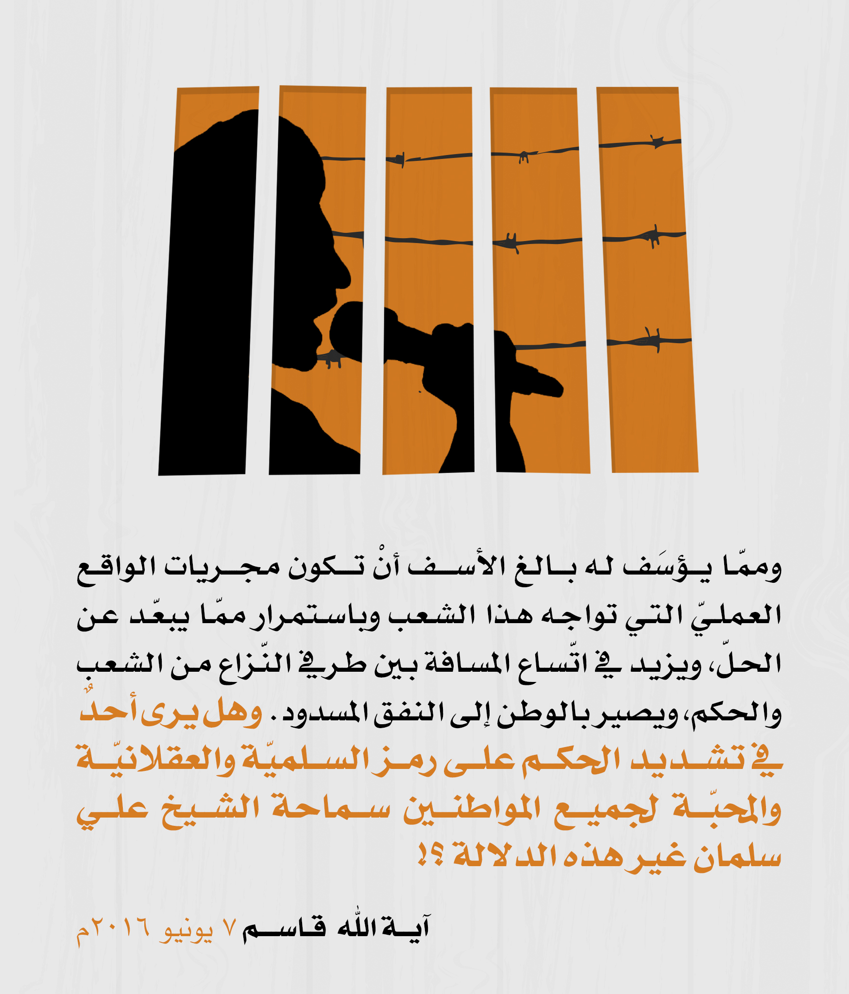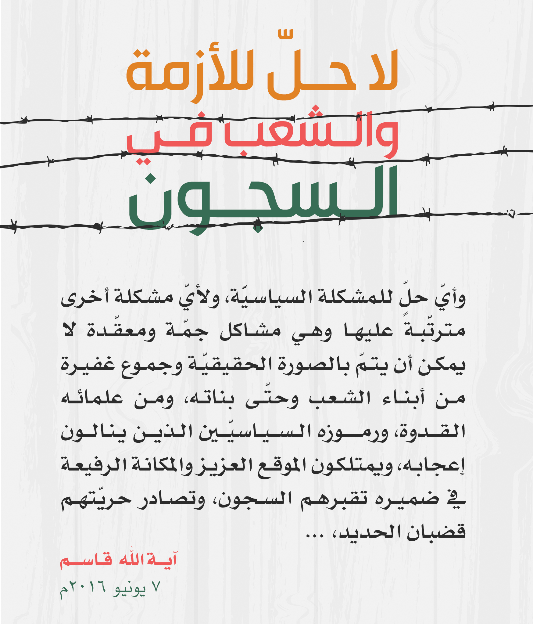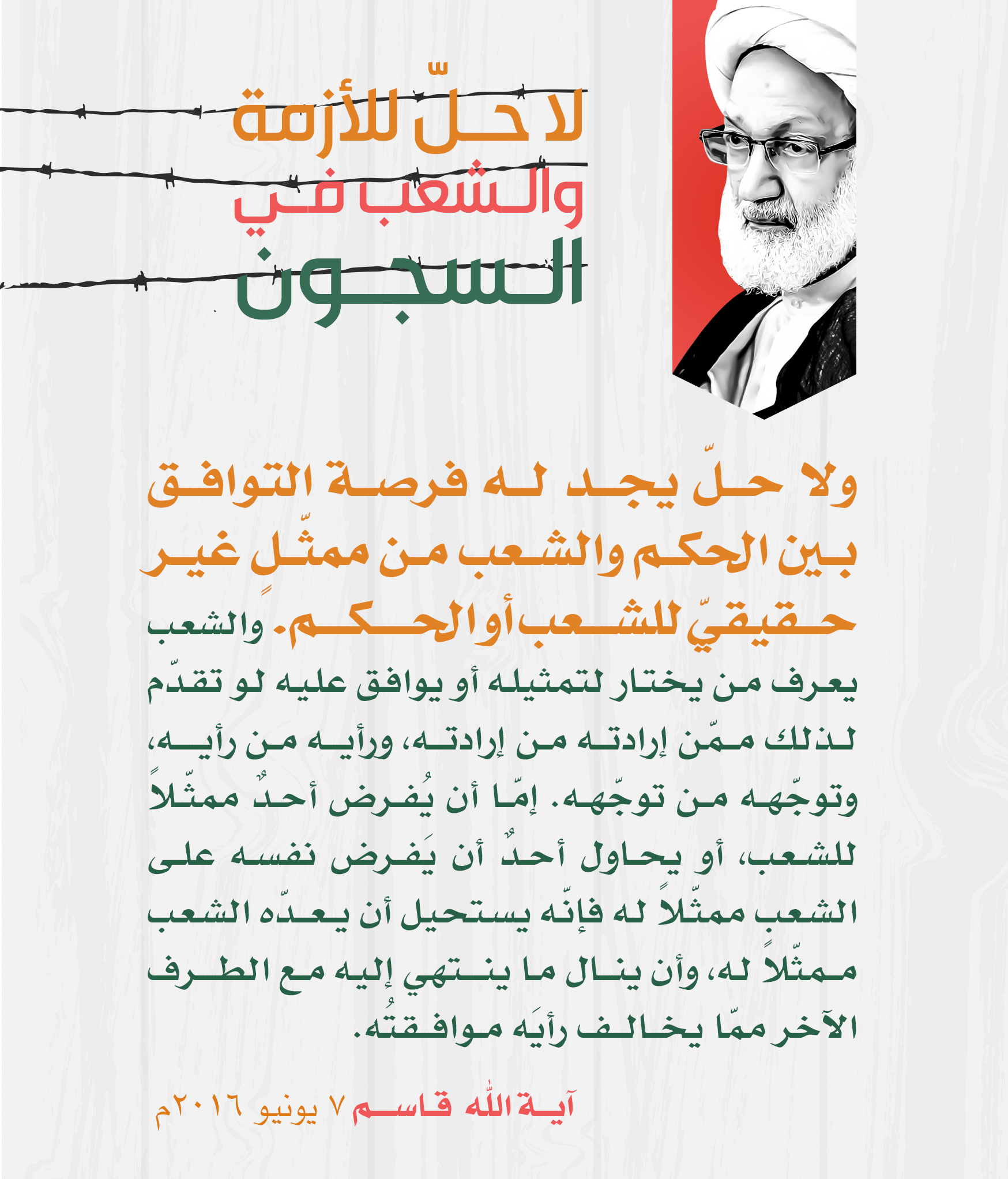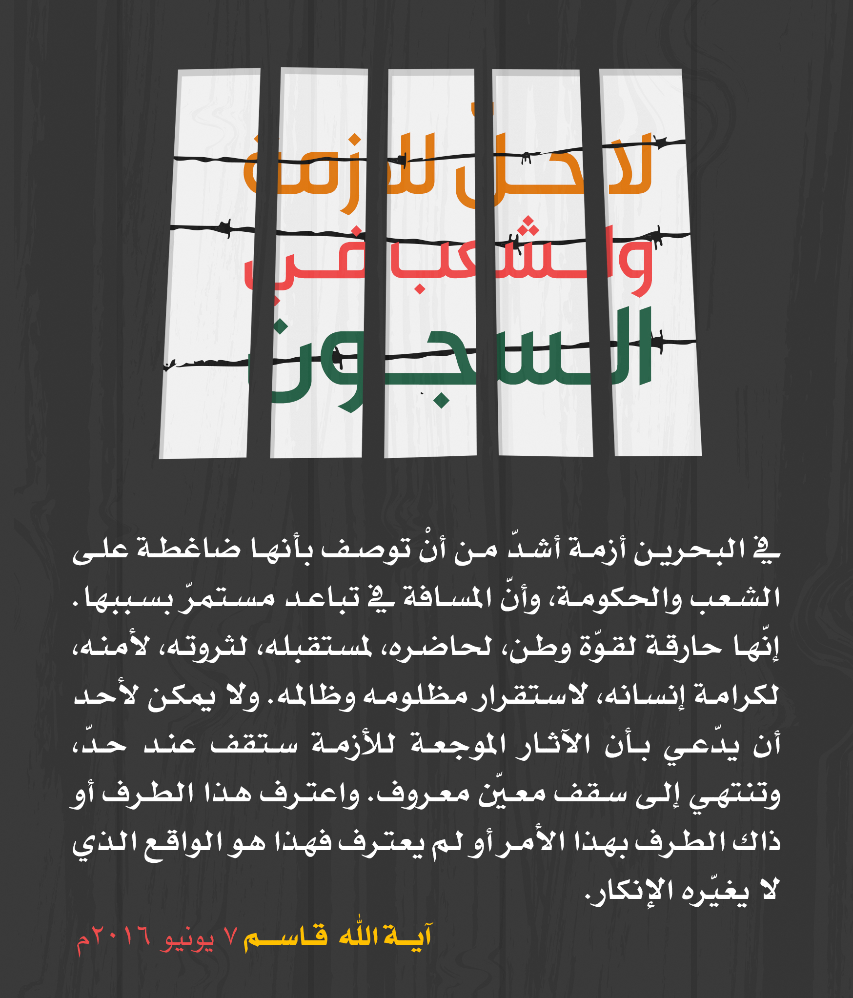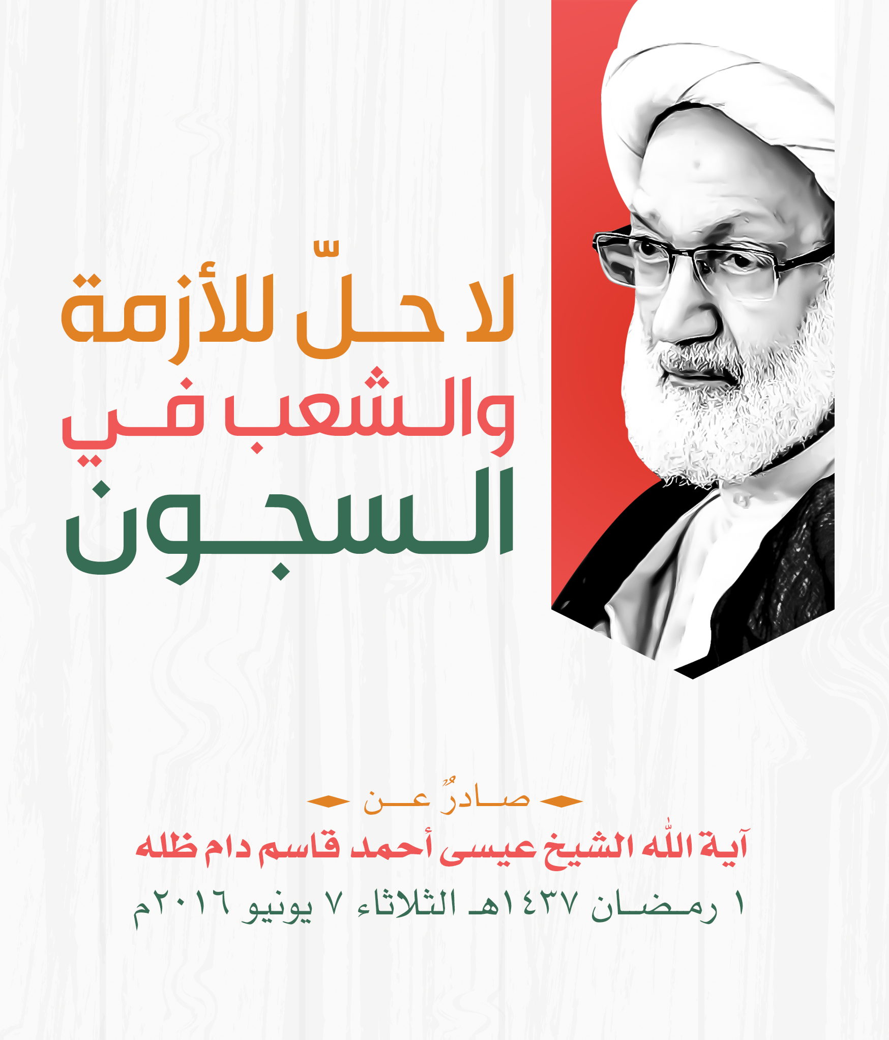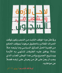مقتطفات مصورة للبيان الذي اصدره سماحة آية الله الشيخ عيسى احمد قاسم بعنوان “لا حل للأزمة والشعب في السجون” 1 رمضان 1437هـ الثلاثاء 7 يونيو 2016م